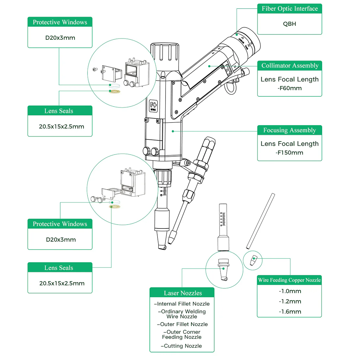 To ensure the longevity of your handheld equipment, regular inspection of the protective windows and copper nozzles is mandatory. Because the welding process generates significant vaporized metal, these consumables must be kept clean to prevent the laser energy from being absorbed by surface debris. We recommend checking the external lens every four hours of use and replacing the copper tips when erosion is visible. Additionally, ensure that the wire feeding alignment is perfectly centered within the beam path. Proper care of your fiber laser welding torch not only protects the expensive internal optics but also ensures that your welding system continues to deliver the high-quality results that modern industrial standards require.